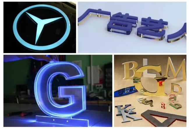 水晶字、立體商標(biāo)是廣告行業(yè)中不可缺少的表現(xiàn)形式。CO2激光切割機(jī)可在亞克力、雙色板等材質(zhì)上進(jìn)行精準(zhǔn)地切劃曲線(xiàn)圖案。由于激光切割機(jī)采用的是“非接觸”加工,不會(huì)壓壞材料,而且切口光滑,能直接省去二次加工。